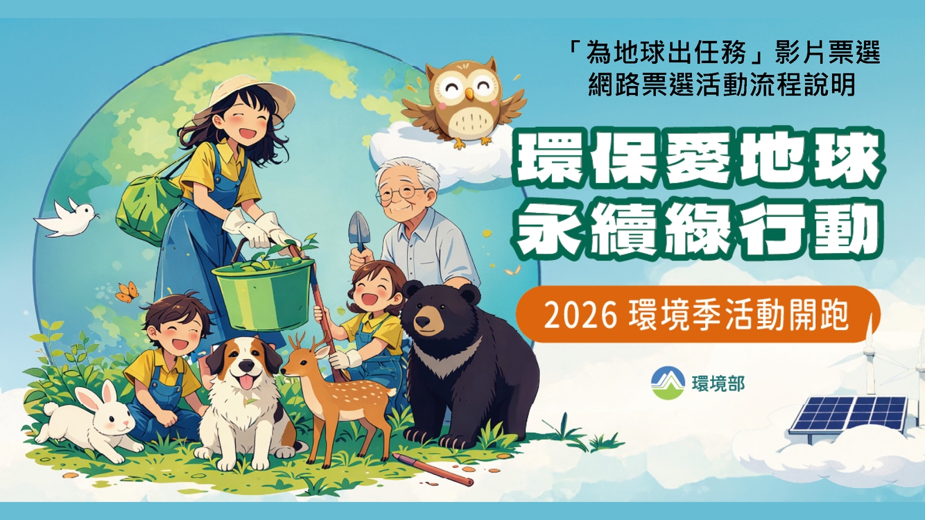 響應115年地球日,環境部攜手全國22縣市地方環保機關,共同發起「為地球出任務」影片票選活動。我們透過明快易懂的「短影音」展現各地最有感的環保行動,從日常節能到減塑生活,捕捉最真實且具創意的一段影像。